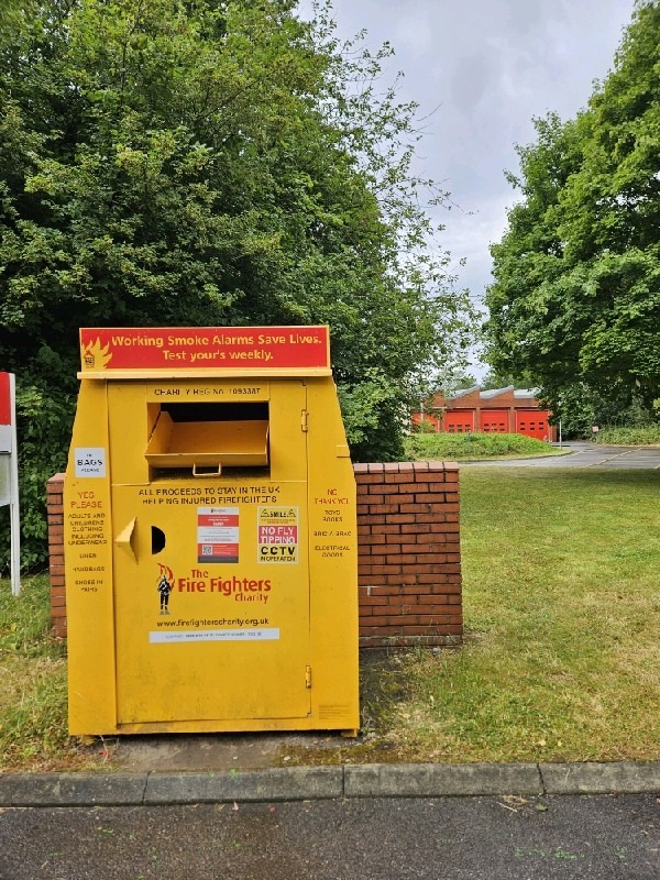 Recycling your clothing and footwear at this bank supports The Fire Fighters Charity.