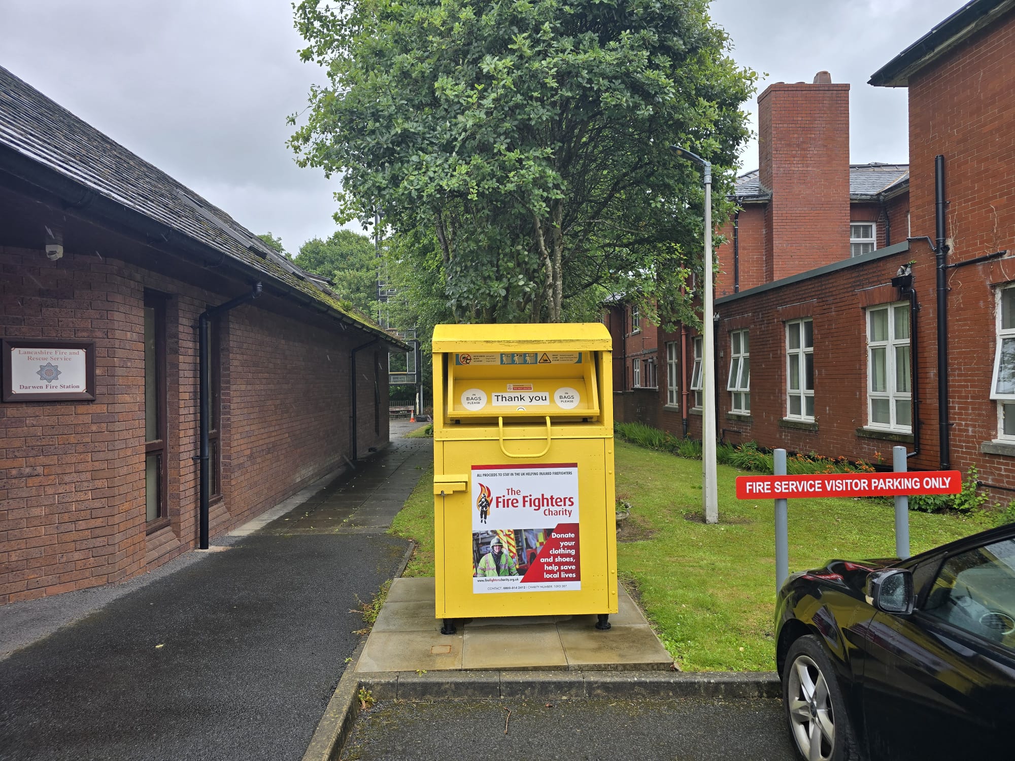 Darwen Fire Station textiles recycling supporting The Fire Fighters Charity, serviced by the award-winning Roberts Recycling.