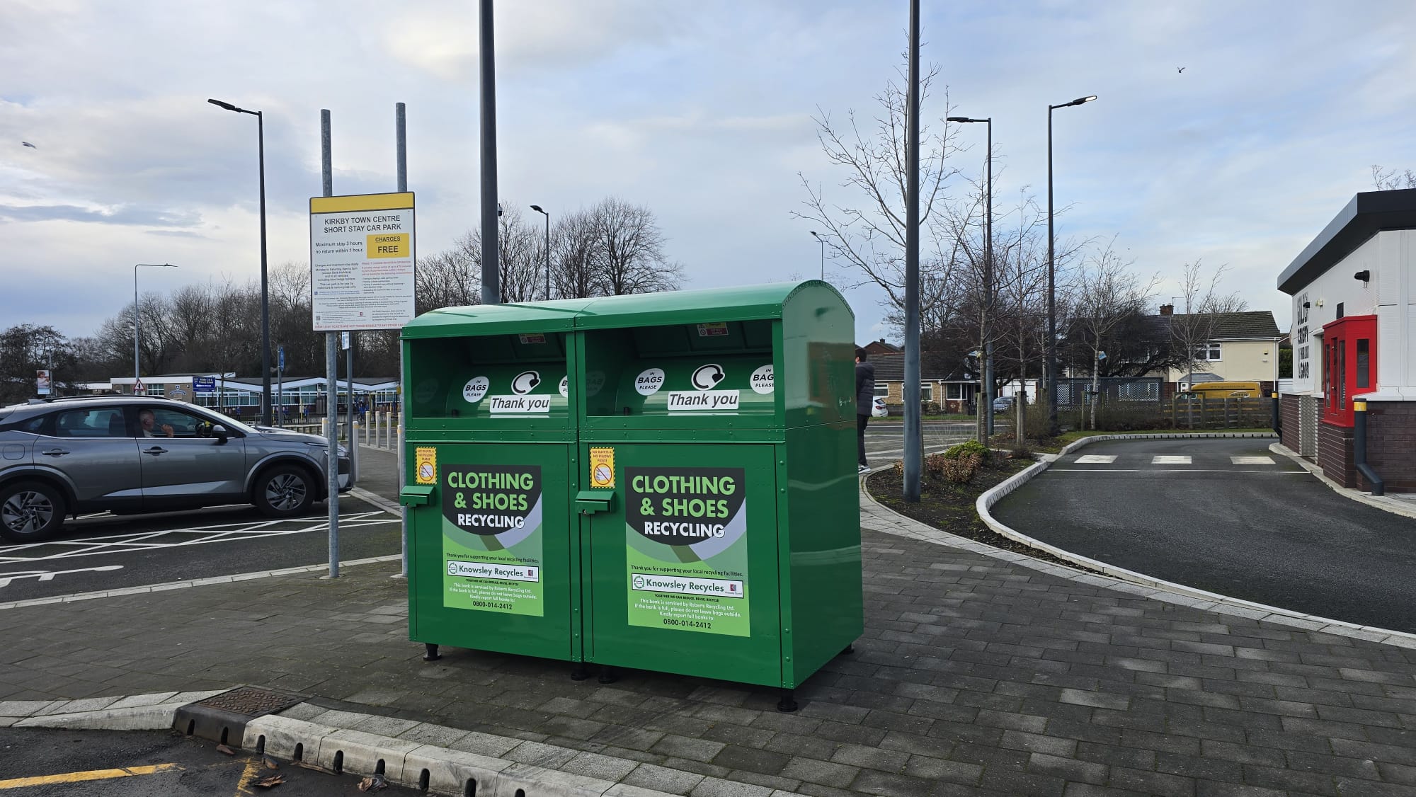 Knowsley Council official clothing recycling bank, serviced by the award-winning Roberts Recycling. Recycle your clean clothing and footwear here in Kirkby.